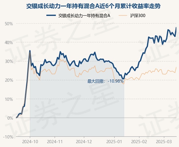 证券之星消息,3月14日,交银成长动力一年持有混合A最新单位净值为0.79元,累计净值为0.79元,较前一交易日上涨3.2%。历史数据显示该基金近1个月上涨3.43%,近3个月上涨11.95%,近6个月上涨47.61%,近1年上涨37.08%。该基金近6个月的累计收益率走势如下图: