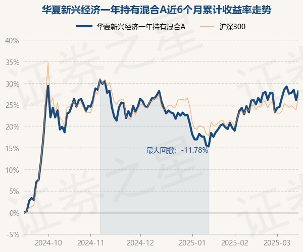 证券之星消息,3月14日,华夏新兴经济一年持有混合A最新单位净值为0.9716元,累计净值为0.9716元,较前一交易日上涨1.64%。历史数据显示该基金近1个月上涨1.74%,近3个月上涨1.92%,近6个月上涨28.13%,近1年上涨19.33%。该基金近6个月的累计收益率走势如下图: