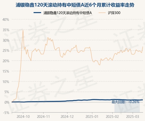 证券之星消息,3月14日,浦银稳鑫120天滚动持有中短债A最新单位净值为1.0928元,累计净值为1.0928元,较前一交易日上涨0.02%。历史数据显示该基金近1个月下跌0.1%,近3个月上涨0.18%,近6个月上涨1.04%,近1年上涨2.51%。该基金近6个月的累计收益率走势如下图: