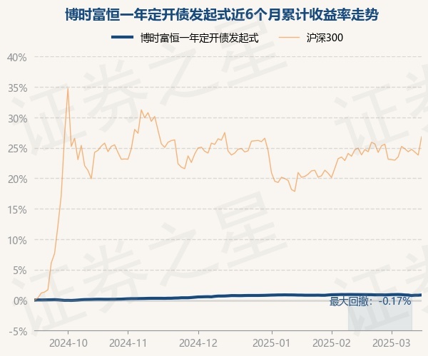 证券之星消息,3月14日,博时富恒一年定开债发起式最新单位净值为1.0182元,累计净值为1.1043元,较前一交易日上涨0.04%。历史数据显示该基金近1个月下跌0.07%,近3个月上涨0.14%,近6个月上涨0.84%,近1年上涨2.17%。该基金近6个月的累计收益率走势如下图: