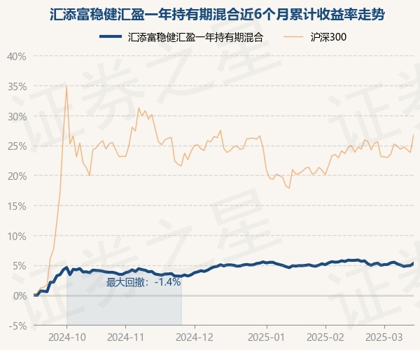 证券之星消息,3月14日,汇添富稳健汇盈一年持有期混合最新单位净值为0.8994元,累计净值为0.9494元,较前一交易日上涨0.36%。历史数据显示该基金近1个月下跌0.51%,近3个月上涨0.41%,近6个月上涨5.29%,近1年上涨0.97%。该基金近6个月的累计收益率走势如下图: