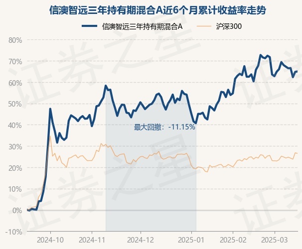 证券之星消息,3月14日,信澳智远三年持有期混合A最新单位净值为0.8197元,累计净值为0.8197元,较前一交易日上涨1.54%。历史数据显示该基金近1个月上涨1.4%,近3个月上涨7.74%,近6个月上涨64.8%,近1年上涨35.53%。该基金近6个月的累计收益率走势如下图: