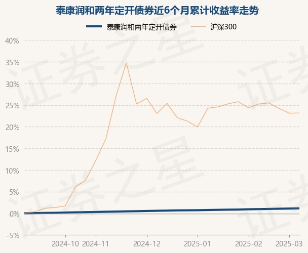 证券之星消息,3月14日,泰康润和两年定开债券最新单位净值为1.0282元,累计净值为1.1396元,较前一交易日上涨0.05%。历史数据显示该基金近1个月上涨0.18%,近3个月上涨0.56%,近6个月上涨1.14%,近1年上涨2.35%。该基金近6个月的累计收益率走势如下图: