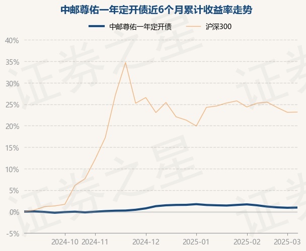 证券之星消息,3月14日,中邮尊佑一年定开债最新单位净值为1.0868元,累计净值为1.0868元,较前一交易日上涨0.05%。历史数据显示该基金近1个月下跌0.52%,近3个月下跌0.32%,近6个月上涨0.94%,近1年上涨3.29%。该基金近6个月的累计收益率走势如下图: