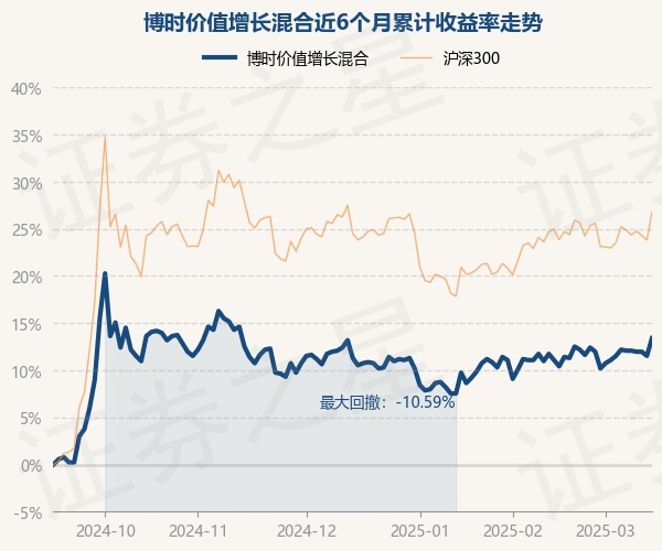 证券之星消息,3月14日,博时价值增长混合最新单位净值为1.024元,累计净值为3.569元,较前一交易日上涨1.69%。历史数据显示该基金近1个月上涨1.49%,近3个月上涨1.89%,近6个月上涨13.4%,近1年上涨8.47%。该基金近6个月的累计收益率走势如下图: