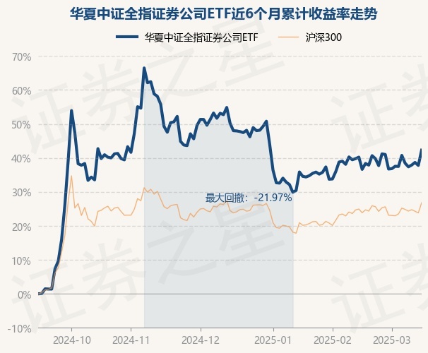 证券之星消息,3月14日,华夏中证全指证券公司ETF最新单位净值为1.3135元,累计净值为1.3135元,较前一交易日上涨3.25%。历史数据显示该基金近1个月上涨1.79%,近3个月下跌5.3%,近6个月上涨42.28%,近1年上涨28.75%。该基金近6个月的累计收益率走势如下图:
