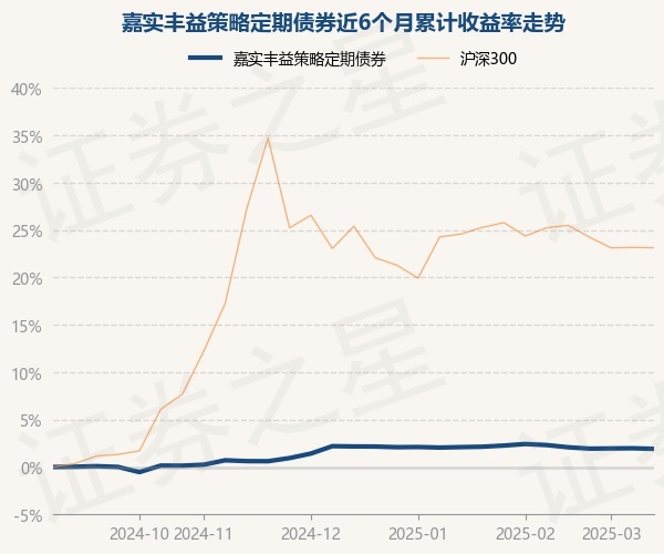 证券之星消息,3月17日,嘉实丰益策略定期债券最新单位净值为1.0024元,累计净值为1.5565元,较前一交易日下跌0.06%。历史数据显示该基金近1个月下跌0.39%,近3个月下跌0.28%,近6个月上涨1.91%,近1年上涨3.54%。该基金近6个月的累计收益率走势如下图: