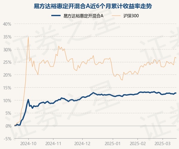 证券之星消息,3月17日,易方达裕惠定开混合A最新单位净值为1.762元,累计净值为2.52元,较前一交易日上涨0.03%。历史数据显示该基金近1个月下跌0.3%,近3个月上涨0.65%,近6个月上涨12.79%,近1年上涨10.35%。该基金近6个月的累计收益率走势如下图: