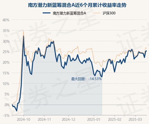 证券之星消息,3月17日,南方潜力新蓝筹混合A最新单位净值为1.8348元,累计净值为2.0649元,较前一交易日上涨0.17%。历史数据显示该基金近1个月上涨3.09%,近3个月上涨4.69%,近6个月上涨25.3%,近1年上涨6.49%。该基金近6个月的累计收益率走势如下图: