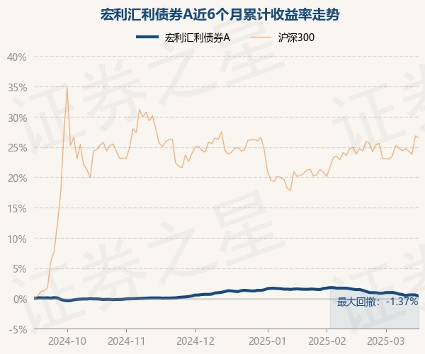 证券之星消息,3月17日,宏利汇利债券A最新单位净值为1.3197元,累计净值为1.4996元,较前一交易日下跌0.18%。历史数据显示该基金近1个月下跌1.11%,近3个月下跌0.83%,近6个月上涨0.39%,近1年上涨2.94%。该基金近6个月的累计收益率走势如下图: