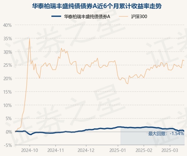 证券之星消息,3月17日,华泰柏瑞丰盛纯债债券A最新单位净值为1.1402元,累计净值为1.6038元,较前一交易日下跌0.33%。历史数据显示该基金近1个月下跌1.26%,近3个月下跌0.96%,近6个月上涨0.16%,近1年上涨1.99%。该基金近6个月的累计收益率走势如下图: