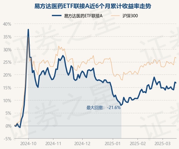 证券之星消息,3月17日,易方达医药ETF联接A最新单位净值为0.897元,累计净值为0.897元,较前一交易日下跌0.26%。历史数据显示该基金近1个月上涨0.62%,近3个月下跌0.83%,近6个月上涨16.74%,近1年下跌4.57%。该基金近6个月的累计收益率走势如下图: