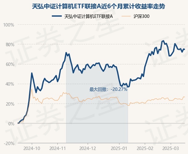 证券之星消息,3月17日,天弘中证计算机ETF联接A最新单位净值为0.8444元,累计净值为0.8444元,较前一交易日下跌0.19%。历史数据显示该基金近1个月下跌1.15%,近3个月上涨14.48%,近6个月上涨74.72%,近1年上涨28.76%。该基金近6个月的累计收益率走势如下图: