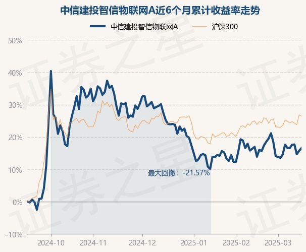 证券之星消息,3月17日,中信建投智信物联网A最新单位净值为1.2477元,累计净值为1.2477元,较前一交易日上涨0.71%。历史数据显示该基金近1个月下跌0.34%,近3个月下跌6.03%,近6个月上涨16.54%,近1年下跌7.3%。该基金近6个月的累计收益率走势如下图: