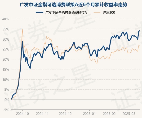 广发中证全指可选消费联接A为指数型-股票基金,根据最新一期基金季报显示,该基金资产配置:无股票类资产,债券占净值比0.11%,现金占净值比6.26%。基金十大重仓股如下: