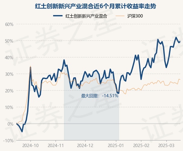 证券之星消息,3月17日,红土创新新兴产业混合最新单位净值为1.318元,累计净值为1.318元,较前一交易日上涨0.46%。历史数据显示该基金近1个月上涨7.15%,近3个月上涨20.48%,近6个月上涨49.43%,近1年上涨24.22%。该基金近6个月的累计收益率走势如下图: