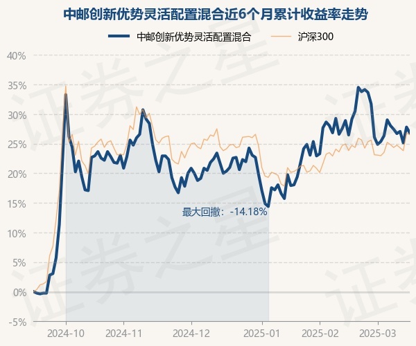 证券之星消息,3月17日,中邮创新优势灵活配置混合最新单位净值为1.04元,累计净值为1.04元,较前一交易日下跌0.76%。历史数据显示该基金近1个月下跌1.61%,近3个月上涨5.37%,近6个月上涨26.83%,近1年上涨15.43%。该基金近6个月的累计收益率走势如下图: