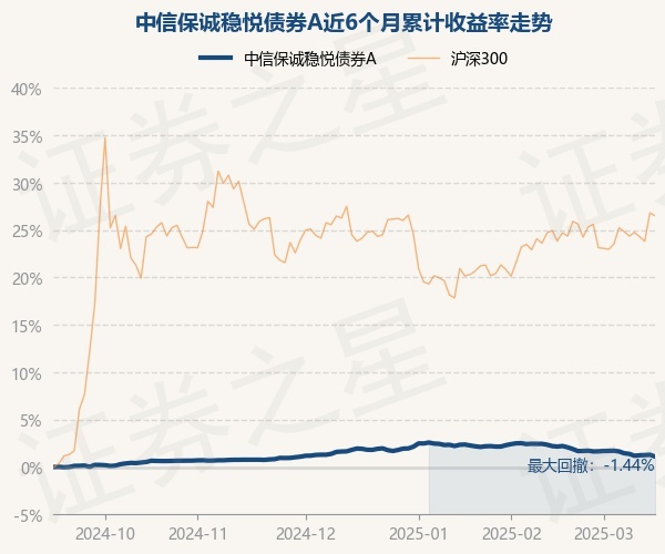 证券之星消息,3月17日,中信保诚稳悦债券A最新单位净值为1.0216元,累计净值为1.2786元,较前一交易日下跌0.19%。历史数据显示该基金近1个月下跌1.07%,近3个月下跌0.8%,近6个月上涨1.11%,近1年上涨2.65%。该基金近6个月的累计收益率走势如下图: