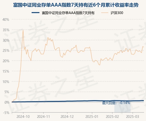 证券之星消息,3月17日,富国中证同业存单AAA指数7天持有最新单位净值为1.0739元,累计净值为1.0739元,较前一交易日上涨0.01%。历史数据显示该基金近1个月上涨0.07%,近3个月上涨0.18%,近6个月上涨0.67%,近1年上涨1.58%。该基金近6个月的累计收益率走势如下图: