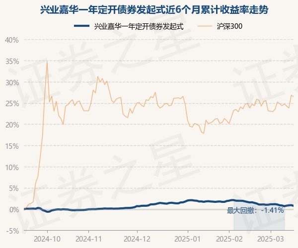 证券之星消息,3月17日,兴业嘉华一年定开债券发起式最新单位净值为1.0418元,累计净值为1.1888元,较前一交易日下跌0.14%。历史数据显示该基金近1个月下跌0.88%,近3个月下跌0.61%,近6个月上涨0.77%,近1年上涨4.86%。该基金近6个月的累计收益率走势如下图: