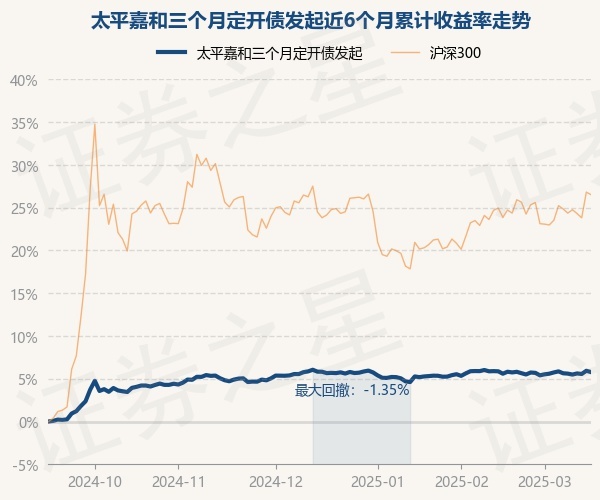 证券之星消息,3月17日,太平嘉和三个月定开债发起最新单位净值为1.0547元,累计净值为1.0547元,较前一交易日下跌0.14%。历史数据显示该基金近1个月下跌0.09%,近3个月上涨0.11%,近6个月上涨5.78%,近1年上涨4.08%。该基金近6个月的累计收益率走势如下图: