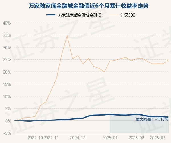 证券之星消息,3月17日,万家陆家嘴金融城金融债最新单位净值为1.0461元,累计净值为1.1497元,较前一交易日下跌0.18%。历史数据显示该基金近1个月下跌0.84%,近3个月下跌0.42%,近6个月上涨1.42%,近1年上涨3.77%。该基金近6个月的累计收益率走势如下图: