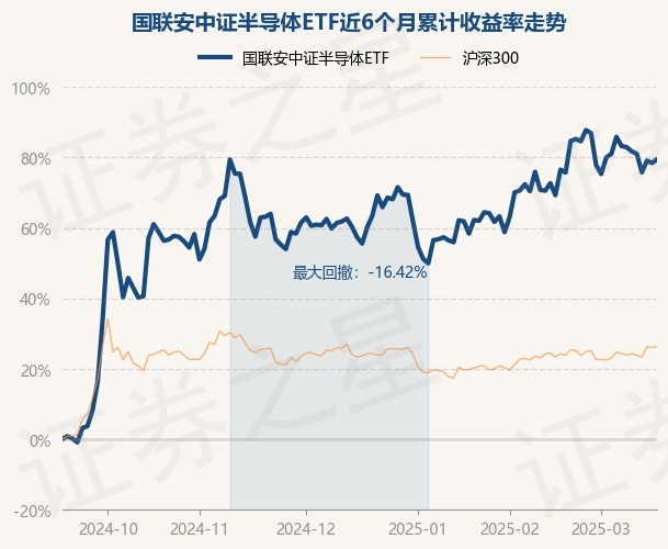 证券之星消息,3月18日,国联安中证半导体ETF最新单位净值为1.1185元,累计净值为2.237元,较前一交易日上涨0.59%。历史数据显示该基金近1个月上涨6.02%,近3个月上涨12.03%,近6个月上涨79.51%,近1年上涨46.92%。该基金近6个月的累计收益率走势如下图: