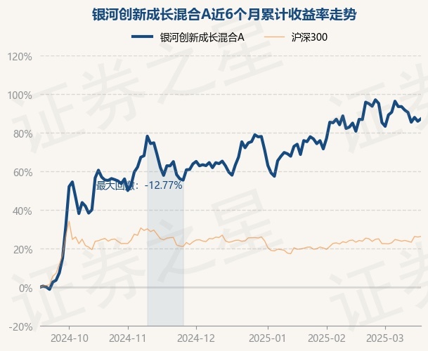 证券之星消息,3月18日,银河创新成长混合A最新单位净值为6.8547元,累计净值为6.8547元,较前一交易日上涨0.71%。历史数据显示该基金近1个月上涨3.58%,近3个月上涨14.71%,近6个月上涨87.33%,近1年上涨59.87%。该基金近6个月的累计收益率走势如下图: