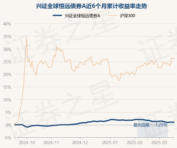 证券之星消息,3月18日,兴证全球恒远债券A最新单位净值为1.045元,累计净值为1.065元,较前一交易日上涨0.05%。历史数据显示该基金近1个月下跌0.73%,近3个月下跌0.31%,近6个月上涨1.0%,近1年上涨3.6%。该基金近6个月的累计收益率走势如下图:
