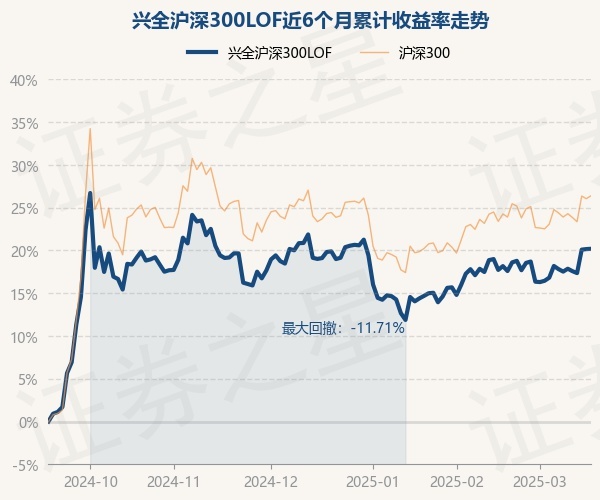 证券之星消息,3月18日,兴全沪深300LOF最新单位净值为2.45元,累计净值为2.45元,较前一交易日上涨0.03%。历史数据显示该基金近1个月上涨2.1%,近3个月上涨0.31%,近6个月上涨20.19%,近1年上涨11.92%。该基金近6个月的累计收益率走势如下图: