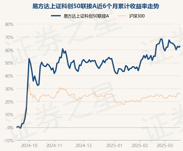 证券之星消息,3月18日,易方达上证科创50联接A最新单位净值为0.8463元,累计净值为0.8463元,较前一交易日上涨0.57%。历史数据显示该基金近1个月上涨7.28%,近3个月上涨10.35%,近6个月上涨62.88%,近1年上涨29.58%。该基金近6个月的累计收益率走势如下图: