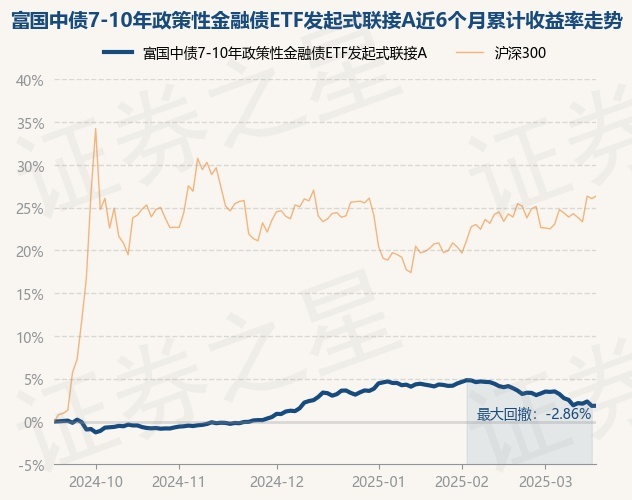 证券之星消息,3月18日,富国中债7-10年政策性金融债ETF发起式联接A最新单位净值为1.1327元,累计净值为1.1357元,较前一交易日上涨0.02%。历史数据显示该基金近1个月下跌2.08%,近3个月下跌1.14%,近6个月上涨1.84%,近1年上涨6.65%。该基金近6个月的累计收益率走势如下图: