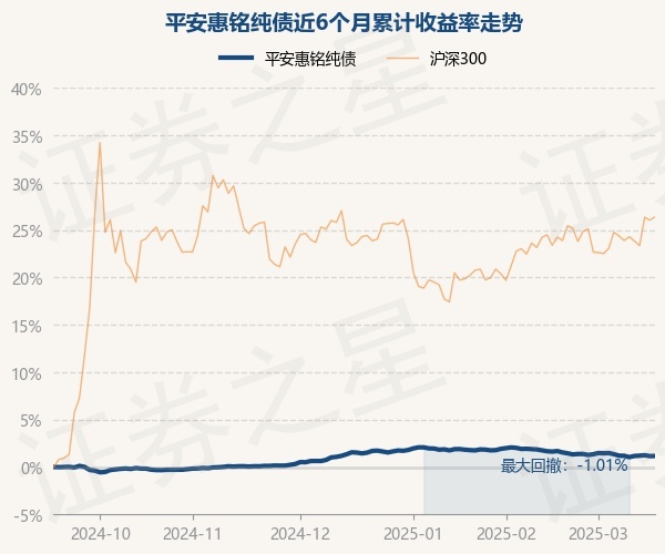证券之星消息,3月18日,平安惠铭纯债最新单位净值为1.0535元,累计净值为1.1975元,较前一交易日上涨0.02%。历史数据显示该基金近1个月下跌0.45%,近3个月下跌0.26%,近6个月上涨1.17%,近1年上涨3.32%。该基金近6个月的累计收益率走势如下图: