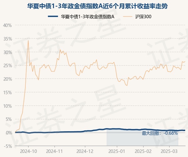 证券之星消息,3月18日,华夏中债1-3年政金债指数A最新单位净值为1.0208元,累计净值为1.1828元,较前一交易日上涨0.02%。历史数据显示该基金近1个月下跌0.08%,近3个月下跌0.29%,近6个月上涨0.75%,近1年上涨2.51%。该基金近6个月的累计收益率走势如下图: