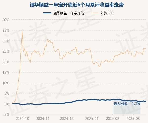 证券之星消息,3月18日,银华顺益一年定开债最新单位净值为1.0149元,累计净值为1.1049元,较前一交易日上涨0.04%。历史数据显示该基金近1个月下跌0.47%,近3个月下跌0.38%,近6个月上涨1.16%,近1年上涨3.33%。该基金近6个月的累计收益率走势如下图: