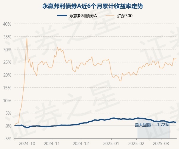 证券之星消息,3月18日,永赢邦利债券A最新单位净值为1.1097元,累计净值为1.1947元,较前一交易日上涨0.04%。历史数据显示该基金近1个月下跌0.93%,近3个月下跌0.7%,近6个月上涨1.34%,近1年上涨4.34%。该基金近6个月的累计收益率走势如下图: