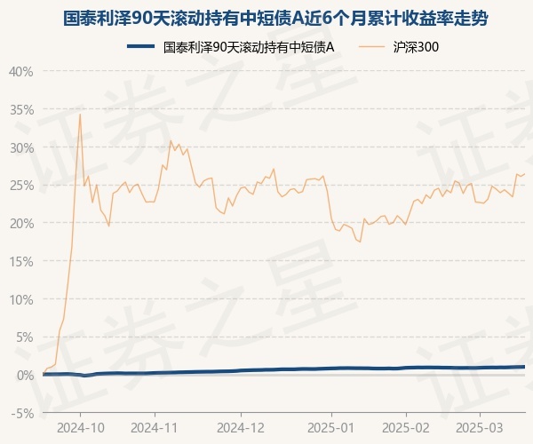 证券之星消息,3月18日,国泰利泽90天滚动持有中短债A最新单位净值为1.1209元,累计净值为1.1209元,较前一交易日上涨0.02%。历史数据显示该基金近1个月上涨0.11%,近3个月上涨0.32%,近6个月上涨0.98%,近1年上涨2.26%。该基金近6个月的累计收益率走势如下图: