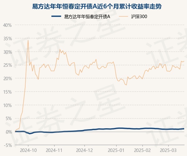 证券之星消息,3月18日,易方达年年恒春定开债A最新单位净值为1.017元,累计净值为1.1507元,较前一交易日上涨0.04%。历史数据显示该基金近1个月下跌0.04%,近3个月上涨0.13%,近6个月上涨1.04%,近1年上涨3.14%。该基金近6个月的累计收益率走势如下图: