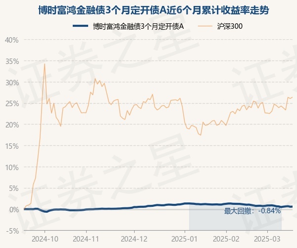 博时富鸿金融债3个月定开债A为债券型-长债基金,根据最新一期基金季报显示,该基金资产配置:无股票类资产,债券占净值比99.78%,现金占净值比0.26%。