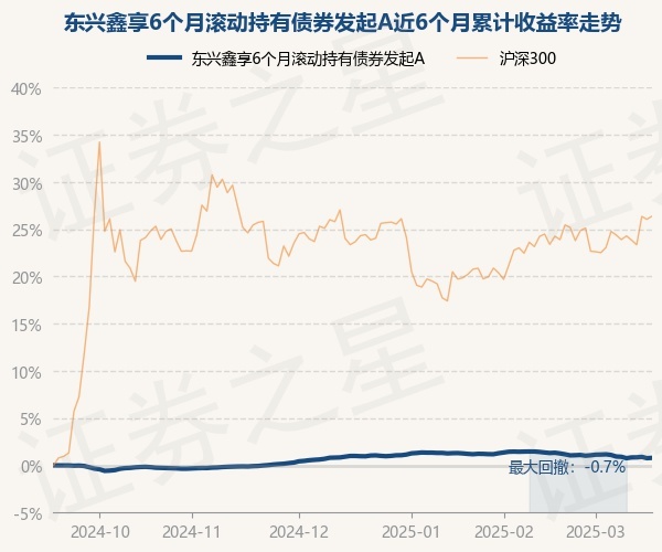 证券之星消息,3月18日,东兴鑫享6个月滚动持有债券发起A最新单位净值为1.1568元,累计净值为1.1568元,较前一交易日上涨0.03%。历史数据显示该基金近1个月下跌0.51%,近3个月下跌0.17%,近6个月上涨0.79%,近1年上涨2.31%。该基金近6个月的累计收益率走势如下图: