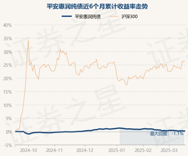 证券之星消息,3月18日,平安惠润纯债最新单位净值为1.032元,累计净值为1.141元,较前一交易日上涨0.04%。历史数据显示该基金近1个月下跌0.41%,近3个月下跌0.65%,近6个月上涨0.21%,近1年上涨1.64%。该基金近6个月的累计收益率走势如下图:
