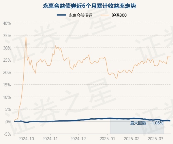证券之星消息,3月18日,永赢合益债券最新单位净值为1.0025元,累计净值为1.1803元,较前一交易日上涨0.0%。历史数据显示该基金近1个月下跌0.58%,近3个月下跌0.64%,近6个月上涨0.31%,近1年上涨2.42%。该基金近6个月的累计收益率走势如下图: