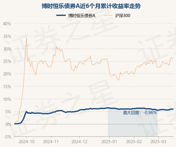 证券之星消息,3月18日,博时恒乐债券A最新单位净值为1.1279元,累计净值为1.1279元,较前一交易日上涨0.08%。历史数据显示该基金近1个月下跌0.06%,近3个月下跌0.16%,近6个月上涨5.91%,近1年上涨7.95%。该基金近6个月的累计收益率走势如下图: