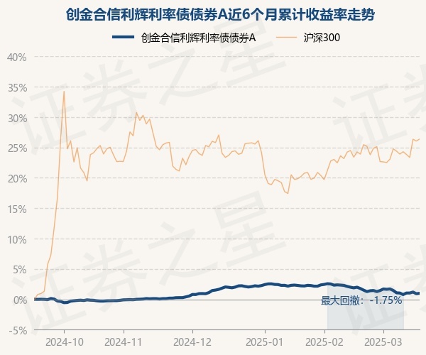 证券之星消息,3月18日,创金合信利辉利率债债券A最新单位净值为1.0209元,累计净值为1.0399元,较前一交易日上涨0.06%。历史数据显示该基金近1个月下跌0.88%,近3个月下跌0.89%,近6个月上涨0.98%,近1年上涨2.62%。该基金近6个月的累计收益率走势如下图: