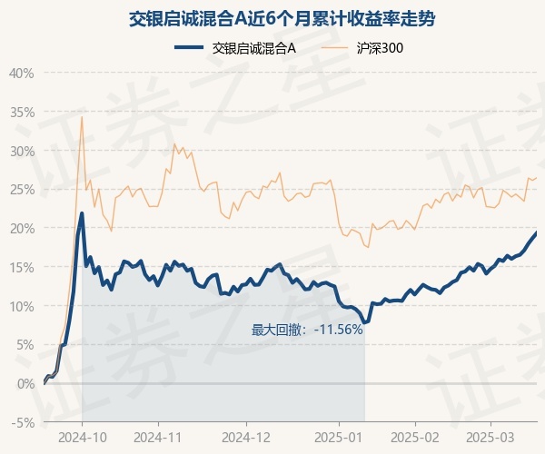 证券之星消息,3月18日,交银启诚混合A最新单位净值为1.1511元,累计净值为1.1511元,较前一交易日上涨0.54%。历史数据显示该基金近1个月上涨5.58%,近3个月上涨5.22%,近6个月上涨19.26%,近1年上涨5.34%。该基金近6个月的累计收益率走势如下图: