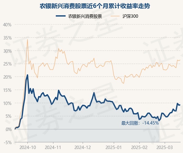 证券之星消息,3月18日,农银新兴消费股票最新单位净值为0.5592元,累计净值为0.5592元,较前一交易日上涨0.07%。历史数据显示该基金近1个月上涨4.41%,近3个月下跌1.18%,近6个月上涨9.2%,近1年下跌7.52%。该基金近6个月的累计收益率走势如下图: