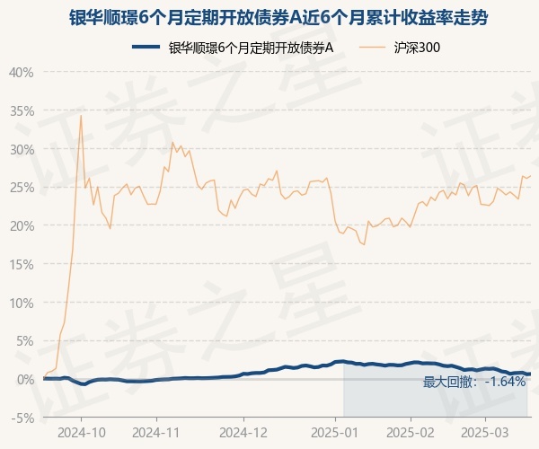 证券之星消息,3月18日,银华顺璟6个月定期开放债券A最新单位净值为1.0213元,累计净值为1.0573元,较前一交易日上涨0.03%。历史数据显示该基金近1个月下跌1.0%,近3个月下跌0.77%,近6个月上涨0.59%,近1年上涨2.57%。该基金近6个月的累计收益率走势如下图: