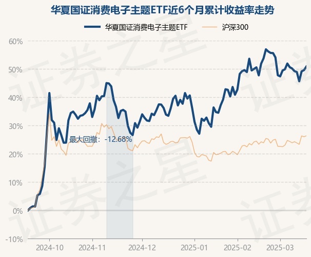 证券之星消息,3月18日,华夏国证消费电子主题ETF最新单位净值为0.8916元,累计净值为0.8916元,较前一交易日上涨0.84%。历史数据显示该基金近1个月上涨2.11%,近3个月上涨10.83%,近6个月上涨50.86%,近1年上涨37.53%。该基金近6个月的累计收益率走势如下图: