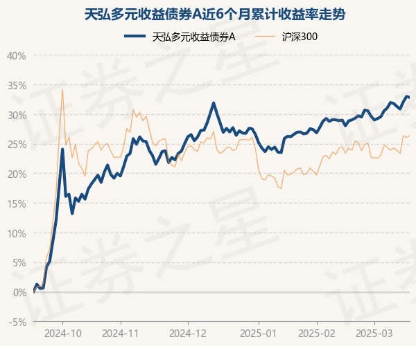 证券之星消息,3月18日,天弘多元收益债券A最新单位净值为1.2416元,累计净值为1.2416元,较前一交易日下跌0.13%。历史数据显示该基金近1个月上涨3.74%,近3个月上涨4.1%,近6个月上涨32.81%,近1年上涨16.88%。该基金近6个月的累计收益率走势如下图: