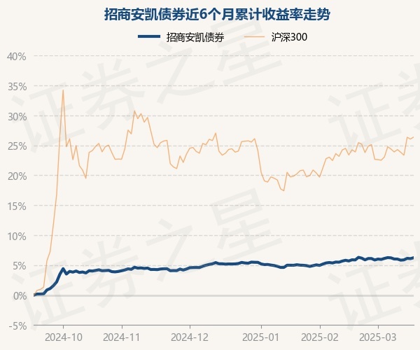 证券之星消息,3月18日,招商安凯债券最新单位净值为1.0435元,累计净值为1.1412元,较前一交易日上涨0.14%。历史数据显示该基金近1个月上涨0.51%,近3个月上涨0.99%,近6个月上涨6.22%,近1年上涨8.18%。该基金近6个月的累计收益率走势如下图: